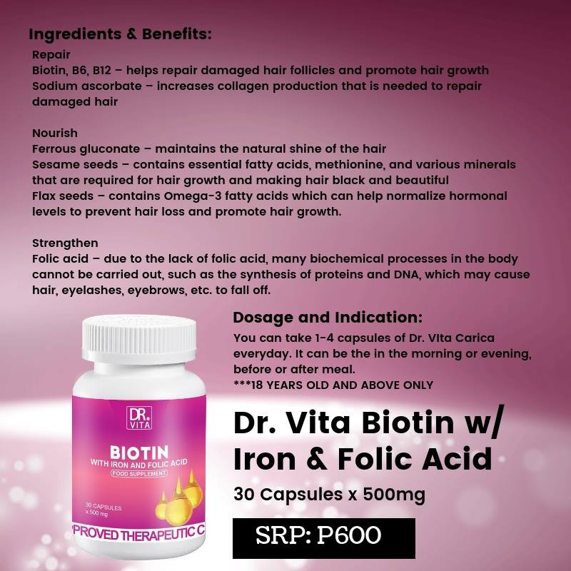 Dr Vita Biotin With Iron And Folic Acid Hair Growth Shopee https://shopee.ph/DR.-VITA-BIOTIN-WITH-IRON-AND-FOLIC-ACID-(Hair-Growth)-i.125322436.1901030427